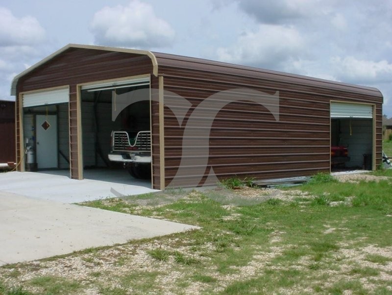 Regular Style Garages are offered in widths from 12' wide up to 30' wide and in lengths up to 36' long. Because the roof panels are oriented horizontally and because of the maximum panel length that we can transport to the job site, we only offer regular style carports in lengths up to 36' long. Units longer than 36' are available with the vertical roof system. Units over 36' long using horizontally oriented panels tend to develop rust and leaks over time.