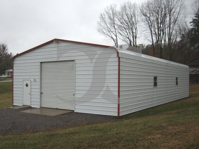24' Wide x 36' Long x 10' High Garage with Regular Roof System (Economy). This enclosed metal garage will accommodate 1 car and can be used for other storage needs.
